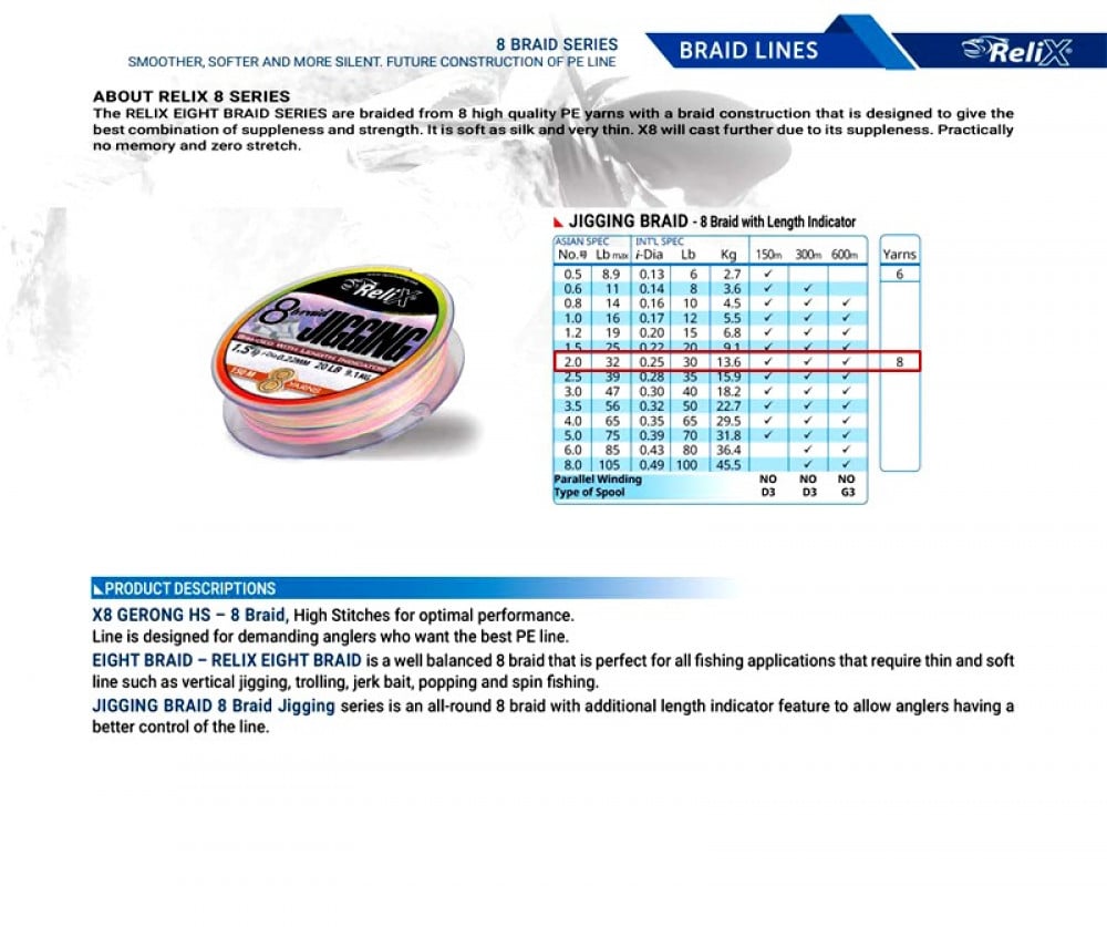 RELIX JIGGING 8 braid #2 30LB 300m